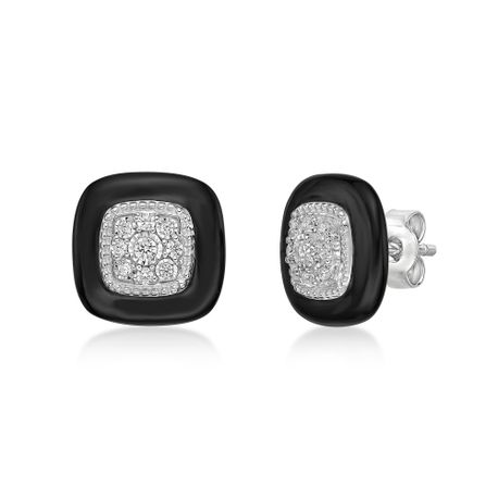 Elevate your elegance with these striking women's earrings crafted in luminous 925 sterling silver. A sleek black ceramic inlay adds modern contrast, while 0.20 cttw of sparkling stones catch the light with every turn. Designed with secure friction backs for comfortable, all-day wear, these earrings blend timeless sophistication with contemporary edge—perfect for the woman who dares to shine.