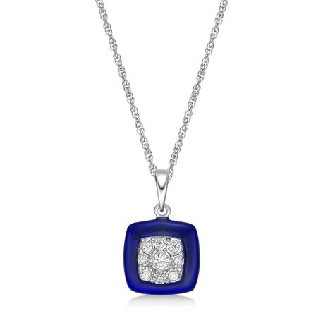 Gemminded Sterling Silver and Blue Ceramic Pendant with 0.10 Cttw