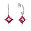 Gemminded Sterling Silver and Red Ceramic Earrings with 0.20 Cttw