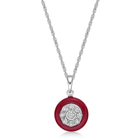 Gemminded Sterling Silver and Red Ceramic Pendant with 0.10 Cttw