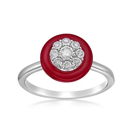Gemminded Sterling Silver and Red Ceramic Ring with 0.10 Cttw