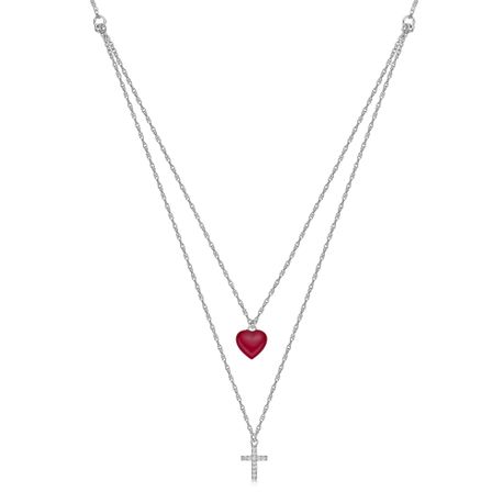 Gemminded Sterling Silver Clover Layered Necklace with Red Ceramic and 0.05 Cttw