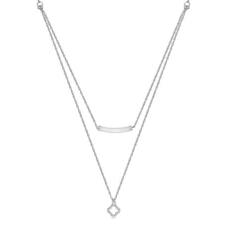 Gemminded Sterling Silver Clover Layered Necklace with White Ceramic and 0.12 Cttw