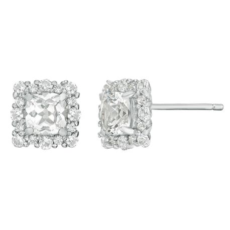 Elevate your elegance with these stunning women's earrings, crafted in lustrous 925 sterling silver. Each piece features a cushion-cut created white sapphire that sparkles with timeless brilliance. The radiant white stones are securely set with friction backs for comfortable, confident wear. Perfect for day or evening, these earrings blend classic charm with modern sophistication—your go-to accessory for effortless glamour.