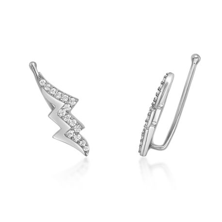Strike in style with our women's Lightning Bolt Crawler Earrings, crafted in radiant white 925 sterling silver. Each earring dazzles with a round diamond (0.15 cttw), capturing bold energy with a luxurious edge. Designed to elegantly trace the ear, these crawlers bring fierce sophistication to any look—perfect for those who dare to shine differently. A modern spark with timeless allure.