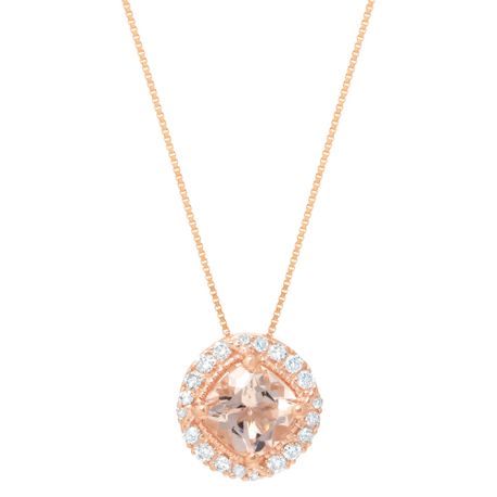 Gemminded Morganite Cushion Pendant with Diamond Accent in Pink Gold
