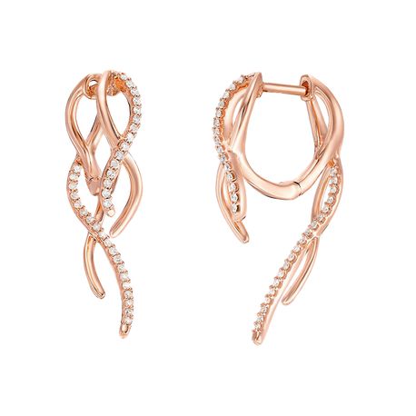 Gemminded Women's 10K Rose Gold White Diamond Designer Huggie Earrings
