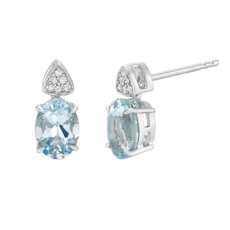 These elegant 10K White Gold Stud Earrings showcase a luminous Oval Aquamarine at their center, surrounded by delicate accent diamonds totaling 0.004 CTW. Designed for everyday refinement, each stud secures with a comfortable Friction Back for effortless wear. The cool blue gem and polished white gold create a timeless, sophisticated pair suitable for day or evening.