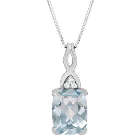 Radiating elegance, this women's aquamarine pendant shimmers with ocean-blue brilliance. Set in polished 10K white gold, the serene aquamarine is crowned by a sparkling diamond accent, offering timeless sophistication. Secured with a classic spring ring clasp, it arrives beautifully boxed—perfect for gifting or cherishing every day. Let its cool blue glow and delicate design add a graceful touch to any look.