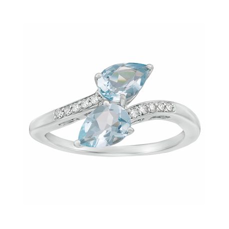 Gemminded 10K White Gold Ring and Aquamarine and 0.06 cttw Diamond
