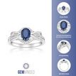 Gemminded 10K White Gold Sapphire Oval Ring with Diamond Accent