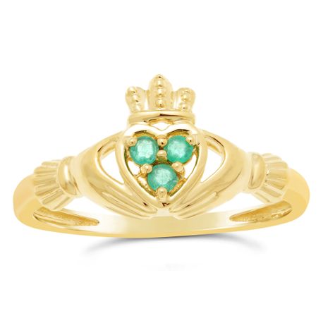 Gemminded Emerald Round 'Claddagh' Ring with Crown in Yellow Gold