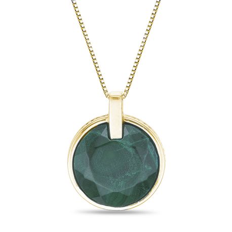A refined malachite pendant set in lustrous 2 Micron 14K Yellow Gold Plated Sterling Silver, exquisitely polished to showcase the stone's banded green depth. Expertly suspended from a faceted Box chain with a secure spring ring clasp, this pendant combines everyday durability with gallery-worthy presence. An accessible luxury piece that transitions effortlessly from day to evening. Ideal for gifting or elevating your own collection, it pairs beautifully with both tailored and relaxed looks.