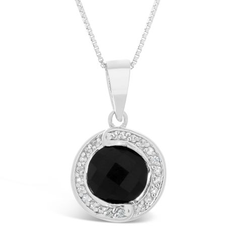 Gemminded Black Onyx and White Topaz Round Pendant in Sterling Silver