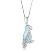 Gemminded Created White Opal Parrot Diamond Pendant with Lobster Clasp, Sterling Silver, .015 Cttw, 18 Inch Cable Chain