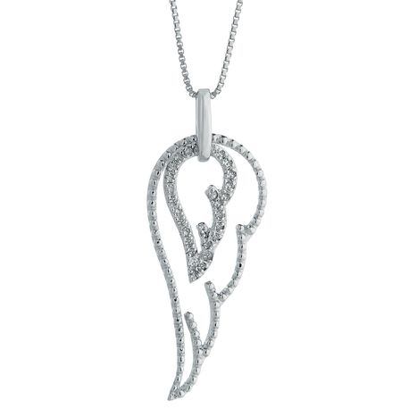 Gemminded Diamond Angel Wing Sterling Silver Pendant on an 18 Inch Box Chain, 0.15 Cttw