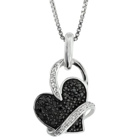 Gemminded Silver Heart Shaped Pendant with Black and White Diamonds