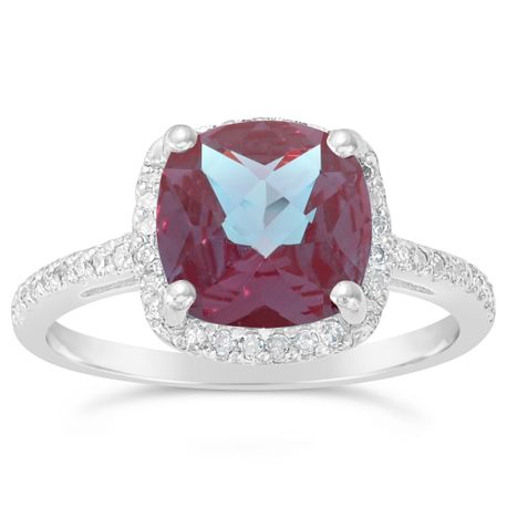 Gemminded 8MM Cushion Alexandrite .16 cttw Diamond Sterling Silver Ring