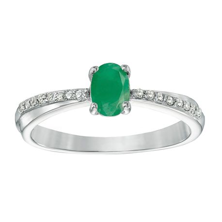 Gemminded .50 Ct Oval Green Emerald Diamond Ring in Silver (.08cttw, I-J, I2-I3)