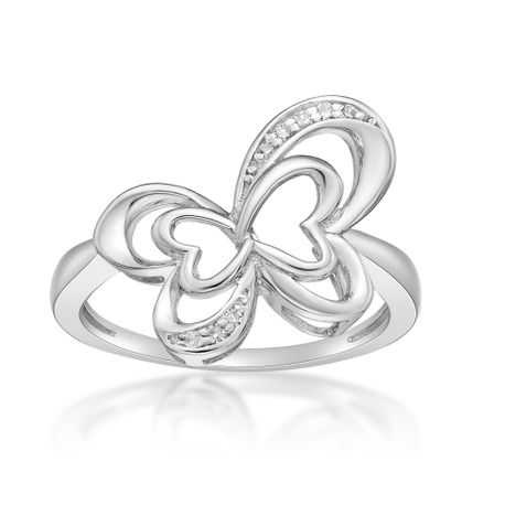 Gemminded Silver Butterfly Shape Ring with Diamond Accent, 0.05 Cttw