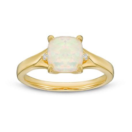 Gemminded 2 Micron Yellow Gold Plated Sterling Silver Ring with Cushion Created Opal and 0.02 cttw Diamond