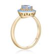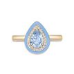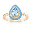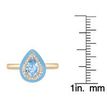 Gemminded Yellow Gold Plated Sterling Silver 7x5 Pear Shaped Sky Blue Topaz Ring with Created White Sapphire and Blue Enamel Halo