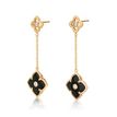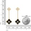 Gemminded Yellow Gold Plated Sterling Silver Black Onyx Four Petal Double Flower Dangle Drop Friction Back Earrings in with Cubic Zirconia