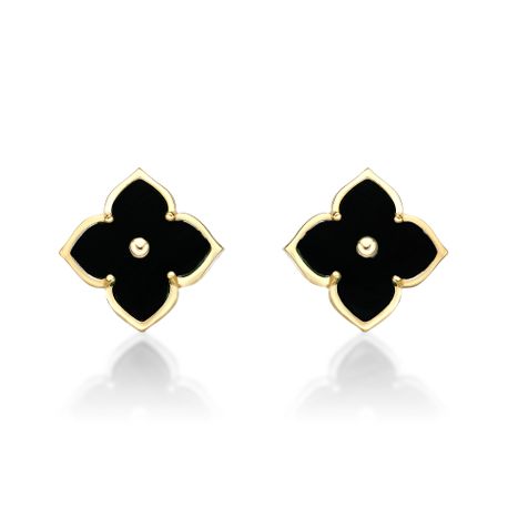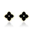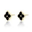 Gemminded Yellow Gold Plated Sterling Silver Black Onyx Four Petal Flower Stud Earrings with Cubic Zirconia