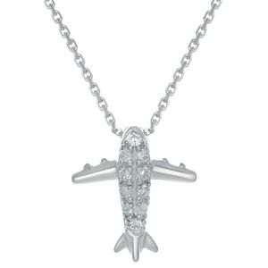 0.05 Round Diamonds 10K White Gold Mini Airplane Pendant with - 18 Inch Cable Chain