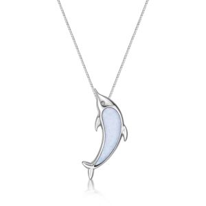 0.003 Carat Diamond and White Opal Dolphin Pendant Necklace in 925 Sterling Silver (H, I2-I3, cttw) 18 Inch Box Chain Spring Ring
