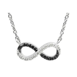 0.08 Carat Black and White Diamond Infinity Pendant Necklace in 10k White Gold 18 Inch Spring Ring cttw