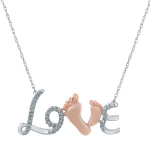 0.11 Round Diamonds 10K White Gold Love with Mother and Child Feet Necklace with - 18 Inch Cable Chain
