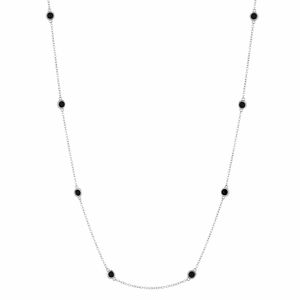 925 Sterling Silver Black Onyx 8 Stone 3MM Station Rolo Chain Necklace - 16 Inch
