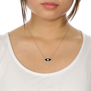 Black Onyx and Cubic Zirconia Oval Charm Pendant Necklace Sterling Silver 18 Inch