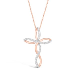 Pink Gold Twisted Cross Pendant with Diamond Accent, 0.12 Cttw