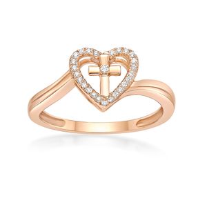 Rose Gold Plated Sterling Silver Heart Cross Ring with Round Diamond, 0.08 Cttw