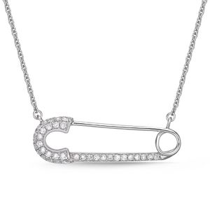 Round Cubic Zirconia 925 Sterling Silver Safety Pin Necklace with - 18 Inch Cable Chain