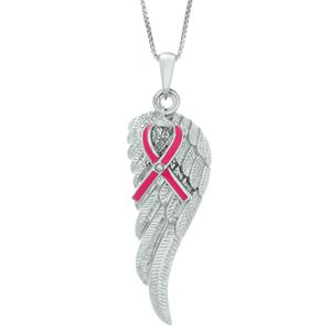 Silver Pink Enamel Angel Wing Pendant with Diamond Accent