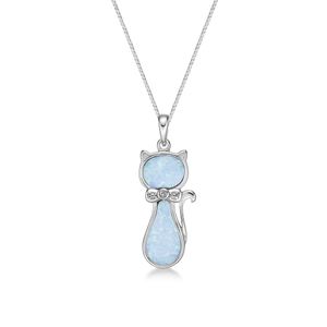 White Opal .004 cttw Diamond Kitty Pendant Sterling Silver
