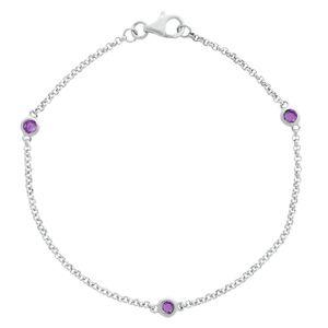 1 Round Amethyst 925 Sterling Silver Staiton Bracelet - 7 Inch