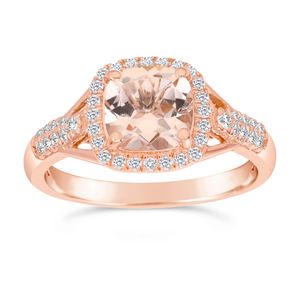 10K Rose Gold Cushion Cut Morganite and 0.25 cttw Diamond Ring