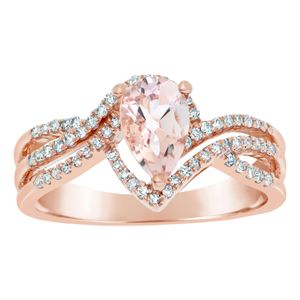10K Rose Gold Pear Shape Morganite and 0.25 cttw Diamond Ring