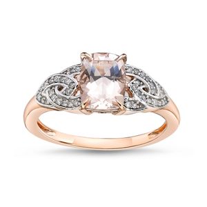 10K Rose Gold Ring with 7 MM Cushion Cut Morganite and 0.18 Carat Diamond Accents