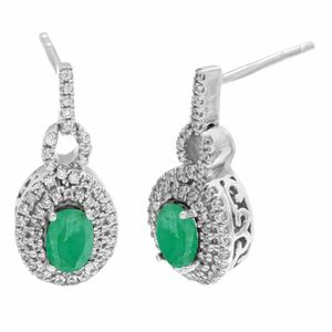10K White Gold Princess Diana 6x4MM Oval Cut Genuine Emerald and 0.45 cttw Diamond Dangling Earrings