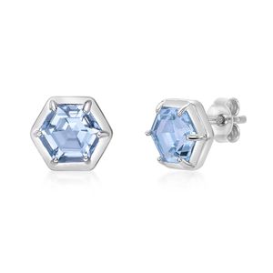 8mm Hexagon Sky Blue Topaz Earrings in Sterling Silver